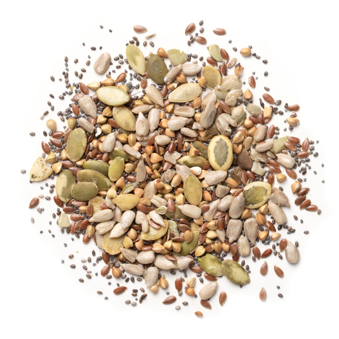 Un mix naturale di semi di zucca, lino, girasole e sesamo, ricco di fibre e nutrienti. Ideale per arricchire impasti, insalate e yogurt, conferendo gusto e benessere a ogni piatto.